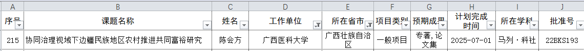 近日,全国哲学社会科学规划办公室公布了2022年度国家社科基金项目立项名单,我校马克思主义学院专职思政教师陈会方教授主持申报的《协同治理视域下边疆民族地区农村推进共同富裕研究》获国家社科一般项目立项。这是我校马克思主义学院继杨海秀副教授2020年获国家社科基金后期资助暨优秀博士论文出版项目后在国家级科研项目上取得的又一次突破,也是马克思主义学院在获批一级学科硕士学位授权点以来取得的重要成绩。