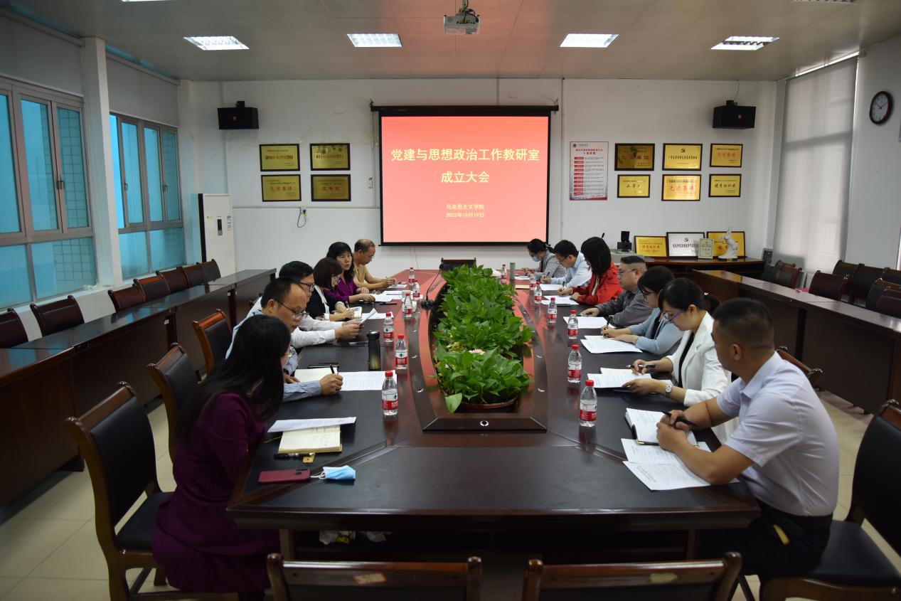 2022年10月19日,党建与思想政治工作教研室成立大会在人文楼206会议室顺利召开。马克思主义学院秦桂秀院长、陈飞副院长、梁巧灵科长和教研室所有成员参加了会议,会议由教研室主任温丽华主持。