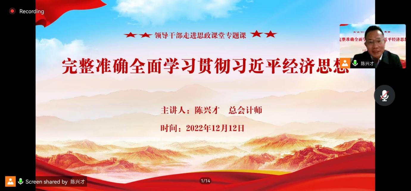 12月12日,学校党委常委、总会计师陈兴才走进《中国近现代史纲要》课堂,以“完整准确全面学习贯彻习近平经济思想”为主题,为2022级护理学专业38-39班的同学们作专题授课。根据学校疫情防控的实际情况需要,此次授课采用线上授课方式进行。