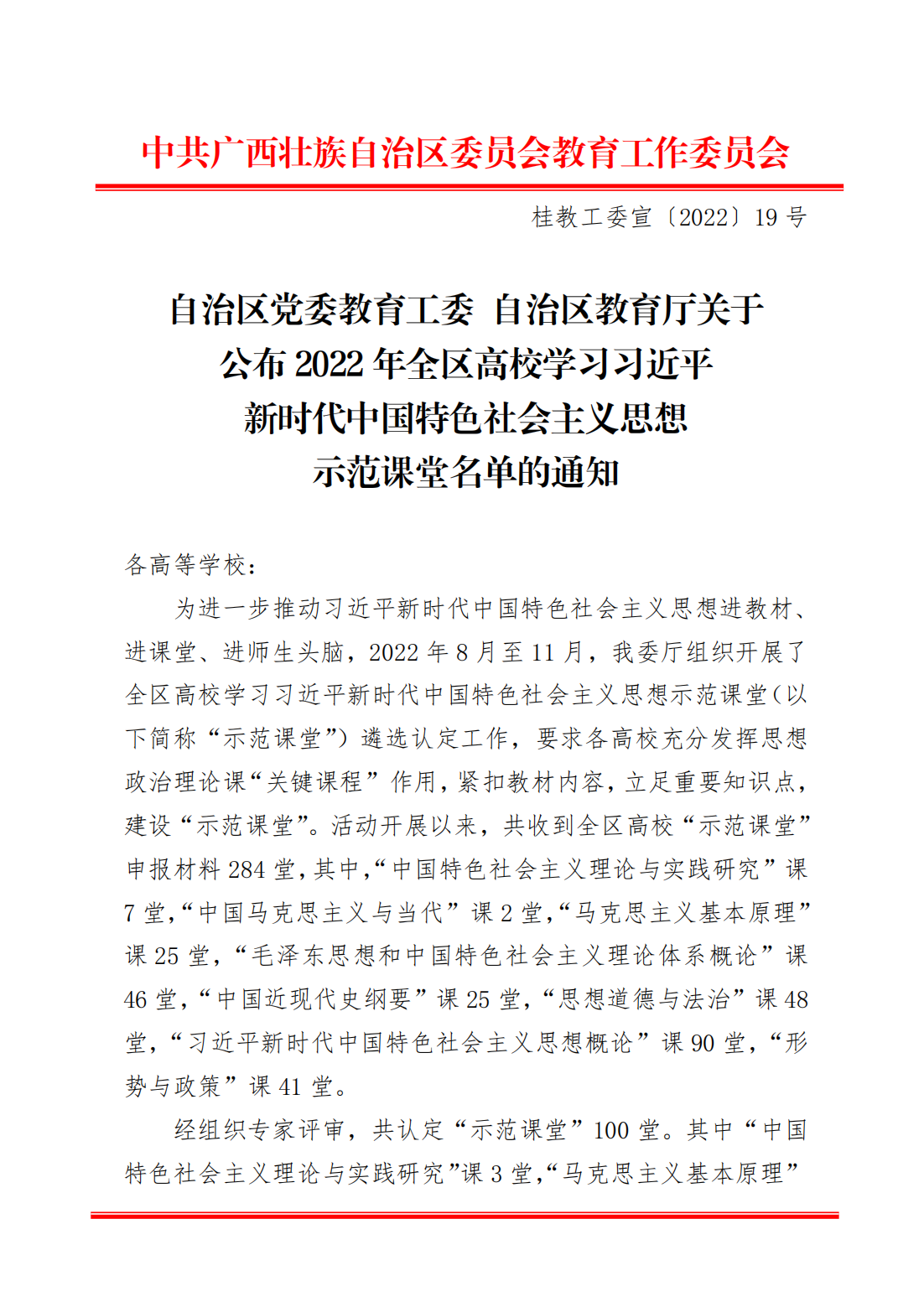 全区高校学习习近平新时代中国特色社会主义思想示范课堂由区教育工作委员会和区教育厅开始于2020年联合举办,迄今已举办3年。每年自收到教育厅的遴选建设通知后,马克思主义学院在学校相关部门指导下,积极组织教师备赛、参赛,据悉,我校三年来获示范课堂共13堂,其中,一等奖4堂、二等奖4堂、三等奖5堂。