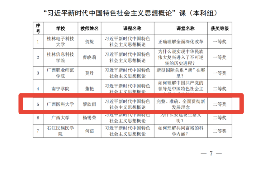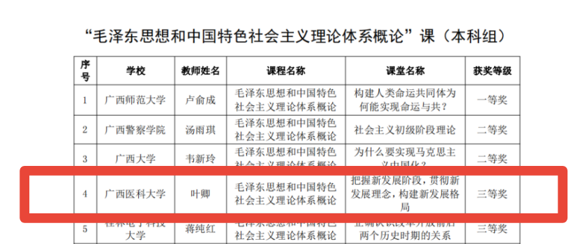 日前,自治区党委教育工委、自治区教育厅公布了2022年全区高校学习习近平新时代中国特色社会主义思想示范课堂名单。我校共有3堂获奖,其中二等奖1项、三等奖2项,充分彰显了落实立德树人根本任务的关键课程作用。
