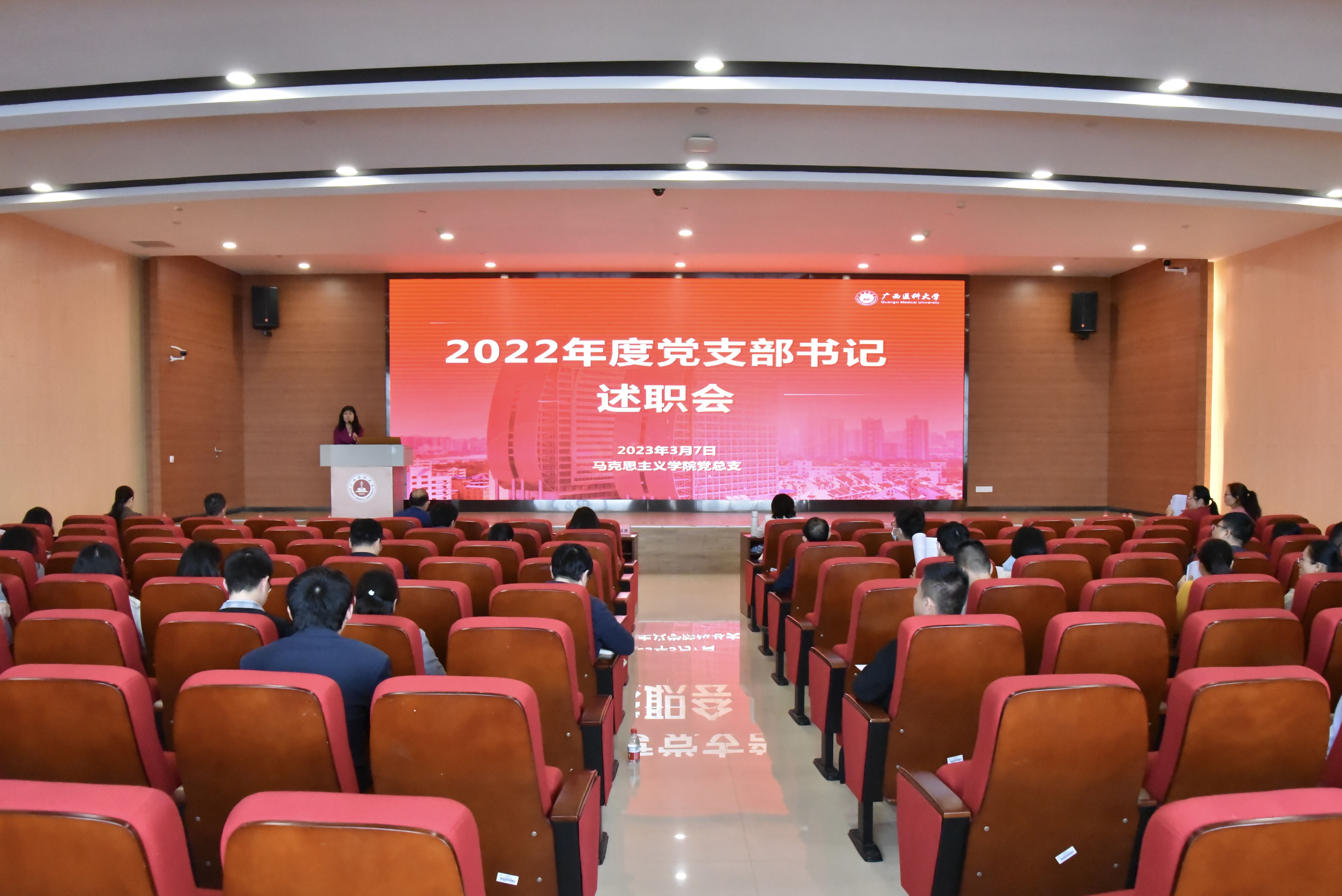2023年3月7日下午,马克思主义学院党总支在卓越楼二十一报告厅召开2022年度党支部书记述职会。会议由马克思主义学院党总支副书记、院长秦桂秀主持,全体党员参加本次会议。