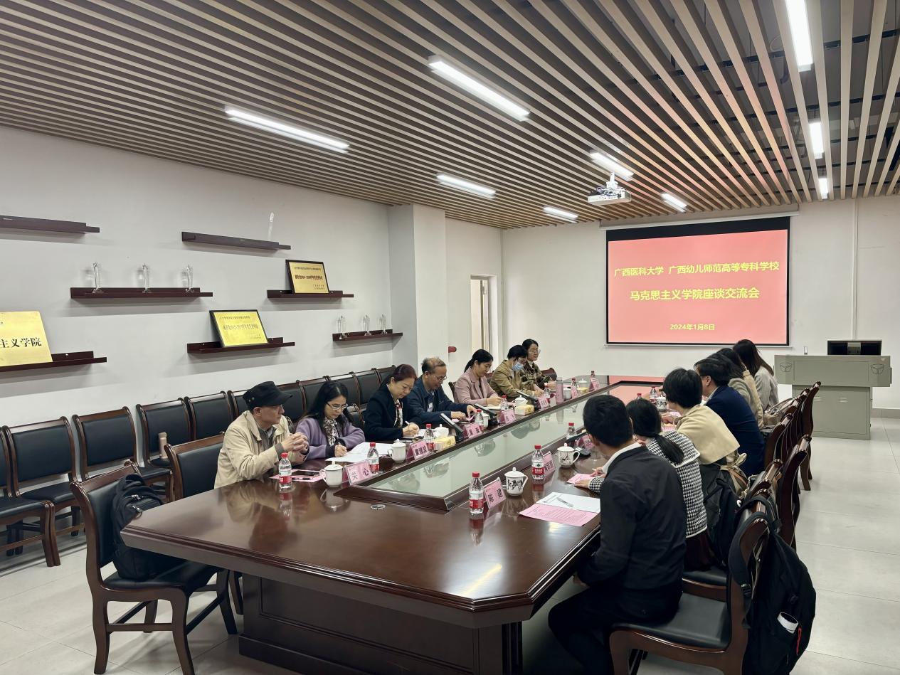 1月8日下午,广西幼儿师范高等专科学校马克思主义学院院长闫冰一行7人来我校马克思主义学院交流座谈。我校马克思主义学院副院长杨海秀和相关教研室、科室负责人参加座谈。座谈会由学院副院长陈飞主持。