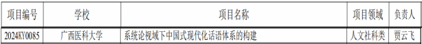 近日,自治区教育厅公布了2024年广西高校中青年教师科研基础能力提升项目立项名单,我院青年教师贾云飞主持的项目《系统论视域下中国式现代化话语体系的构建》喜获立项,这是学院成立以来连续7年喜获该项目立项。