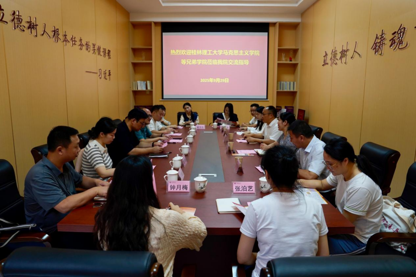 9月29日,桂林理工大学马克思主义学院院长蒋晓俊率该校及广西城市职业大学、南宁理工学院、广西建设职业技术学院等结对共建院校教师代表一行到我校马克思主义学院开展专题调研交流活动。