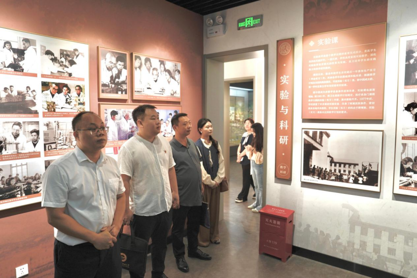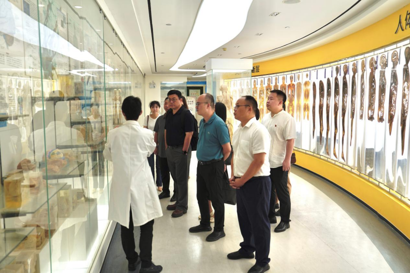 蒋晓俊院长一行先后参观了我校生命科学馆、时光记忆馆及学院研究生思政教育研究中心,通过实地走访,详细了解我校在医学人文教育、思政实践育人平台建设以及马克思主义理论学科融合发展方面取得的成效。