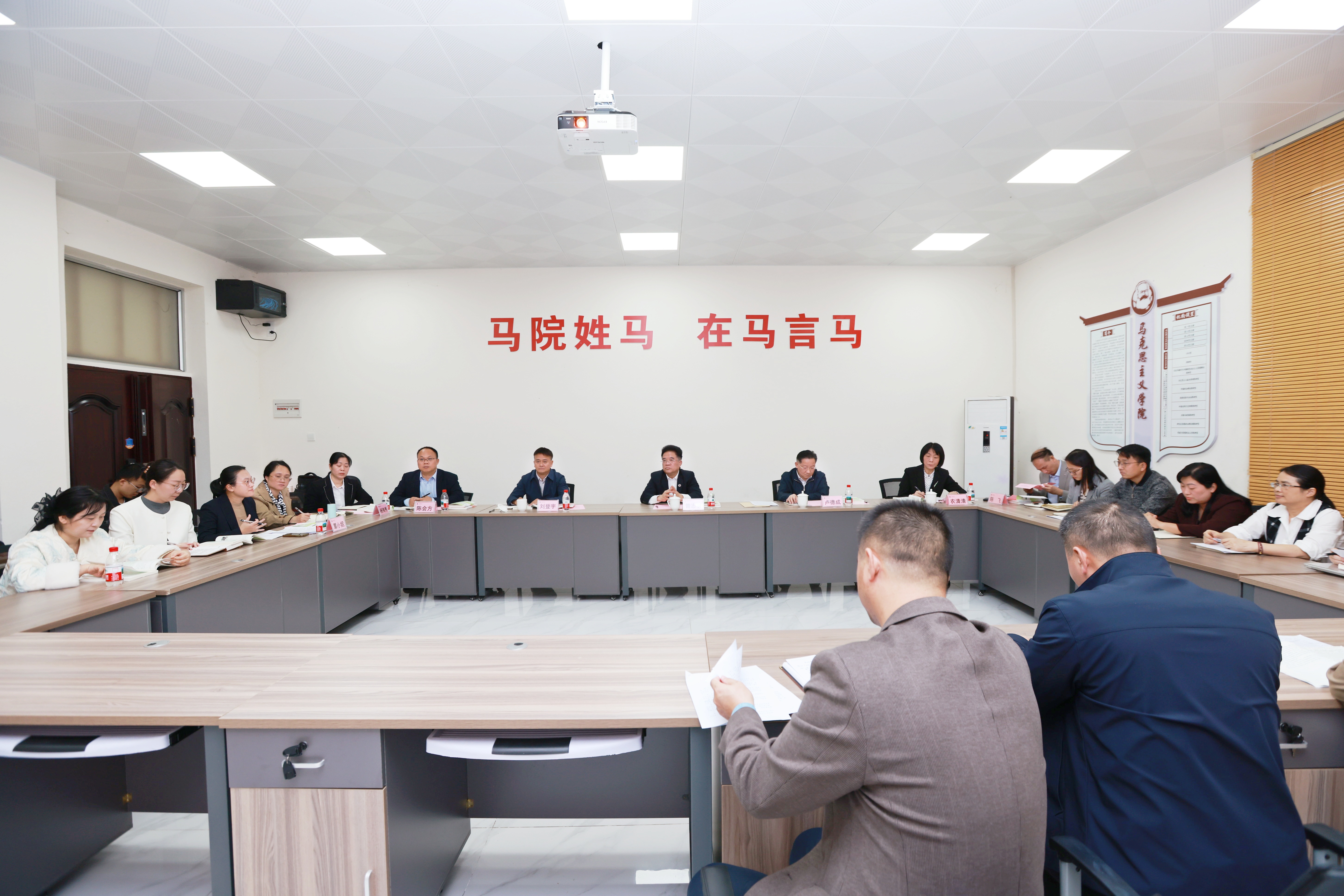 11月24日,学校校长曾志羽率队到马克思主义学院开展现场办公,并参加学院教研室集体备课会。副校长卢德成,以及教务处、教评中心等职能部门负责人参加调研。